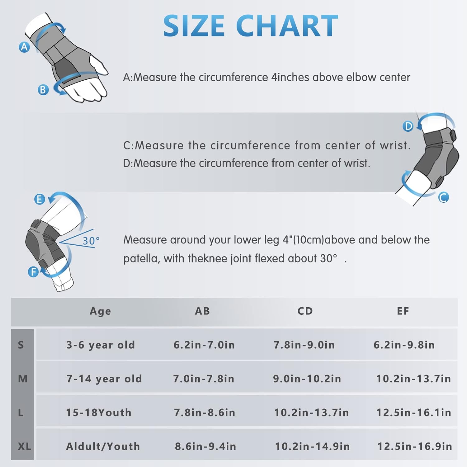 🚲♥ 3 IN 1 ADULT/CHILD ROLLER SKATING GEAR SET – 2pcs knee pads, 2pcs elbow pads,2pcs wrist guards, Use size Size Suggest: S suggest for 3-6 year old, M suggest for 7-14 ,L suggest for 15-18Youth,XL suggest for Aldult/Youth It can adjust size and tighten freely. Suitable for different height and weight(Please check our size chart in the detail picture)