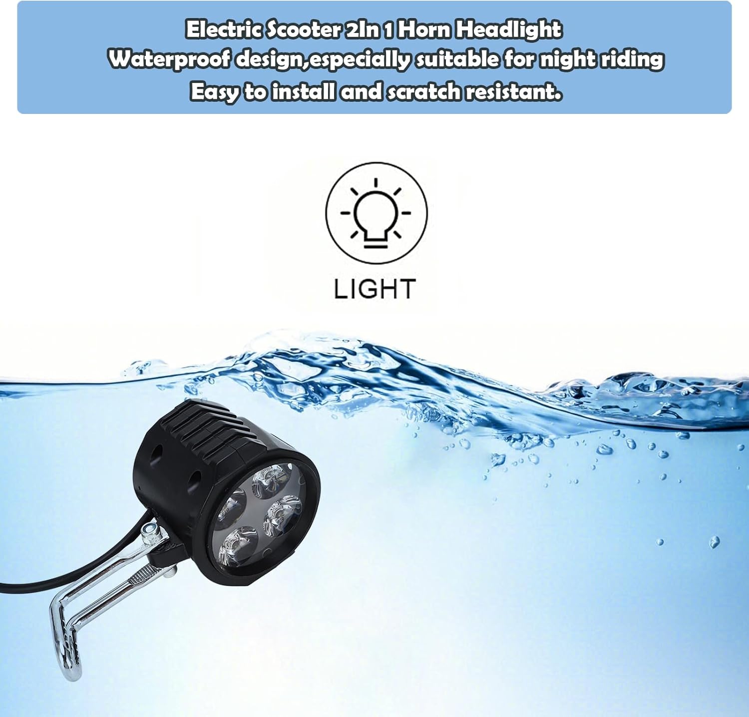 【Multifunctional 2-in-1 Function】The convenience of the integrated electric scooter LED light 2-in-1 design, which combines powerful LED lights with a clear and loud horn, increases safety and functionality on the road.