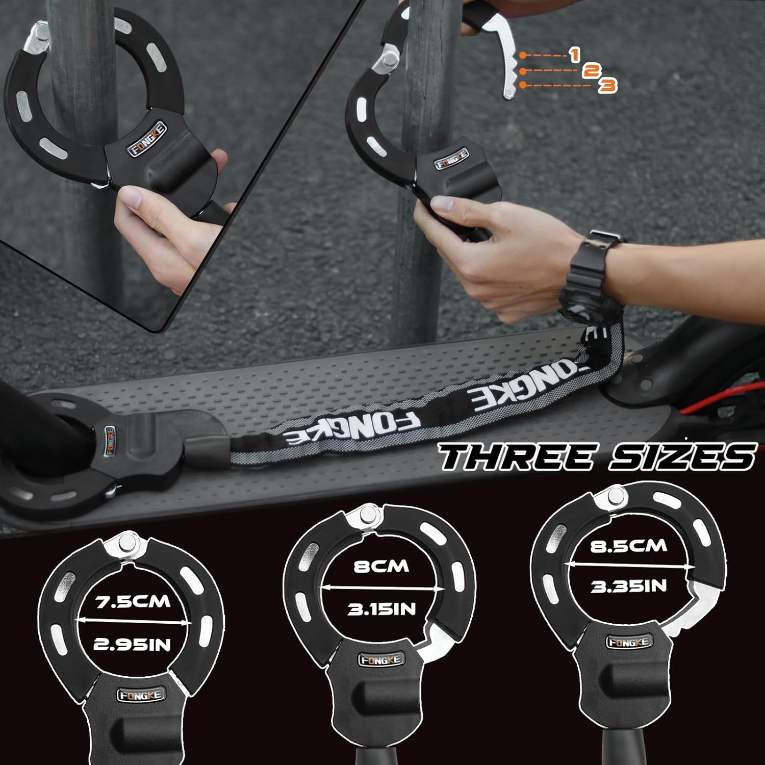 🛴【Double Ring Lock Design】The double ring lock allows you to quickly and easily attach it to your electric scooter. It comes with 3 keys to secure the lock for safety.