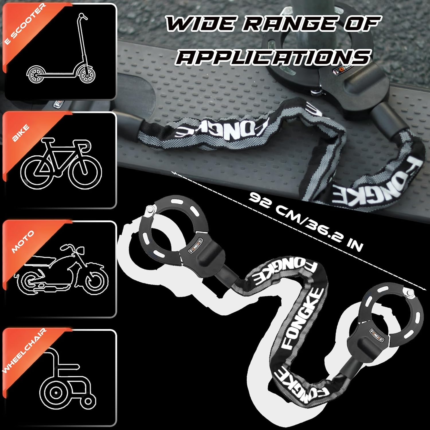 🎉【Multiple Uses】The electric scooter lock can be used to lock your scooter, as well as bicycles, e-bikes, ladders, balance bikes and other items that can be secured to fence posts.